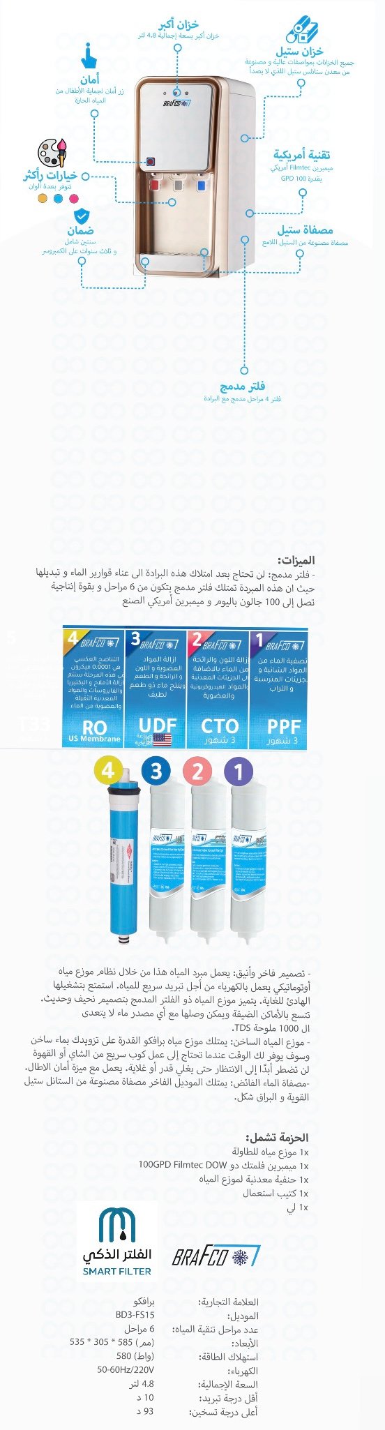 - تصميم فاخر وأنيق: برادة ماء برافكو صنعت بإتقان مع فلتر مدمج يغنيك عن تبديل قوارير الماء ، فلتر الأربع مراحل لحياة أسهل .